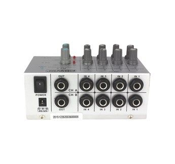 A MX 8 permite misturar 4 fontes Stereo (alta impedância) num formato muito compacto.